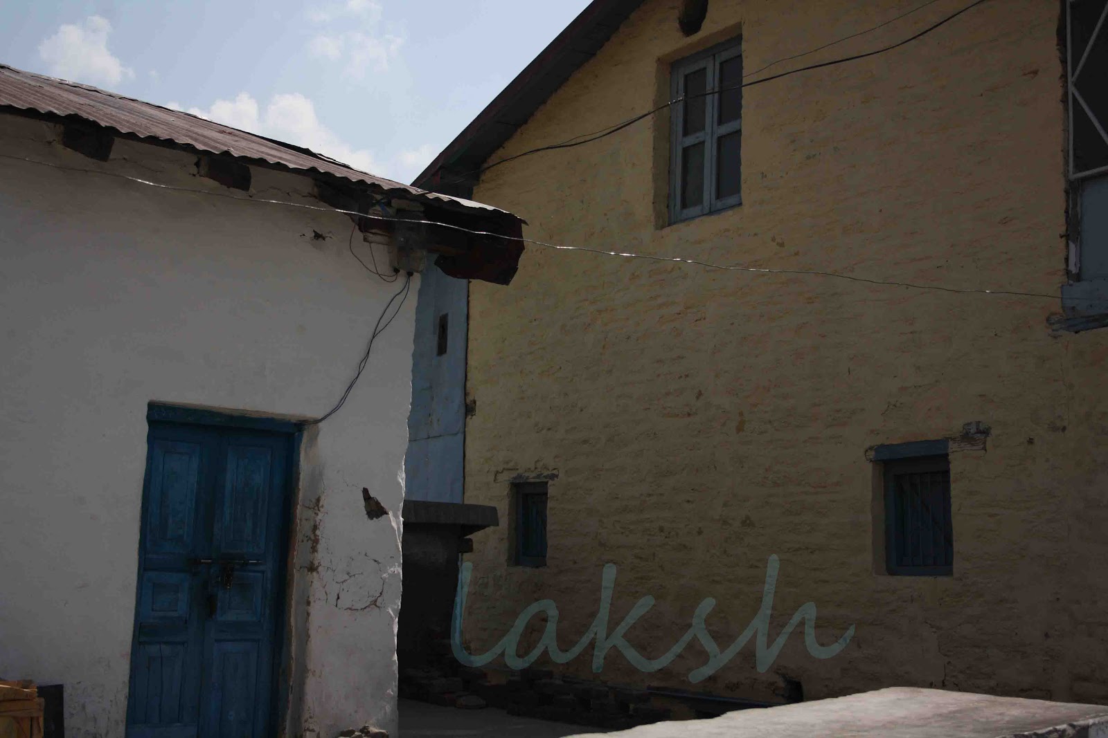 As we travelled,in the Kumaon regions,their houses where the ones which we loved the most.The fairy tale type homes with small blue windows that perched on the high hills,with stone walls white washed ,slate roofs and courtyards of grey stone.